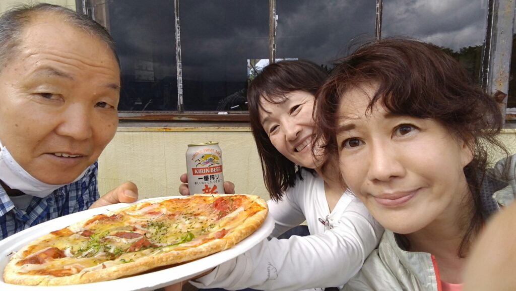 山荘名物ピザを味わう