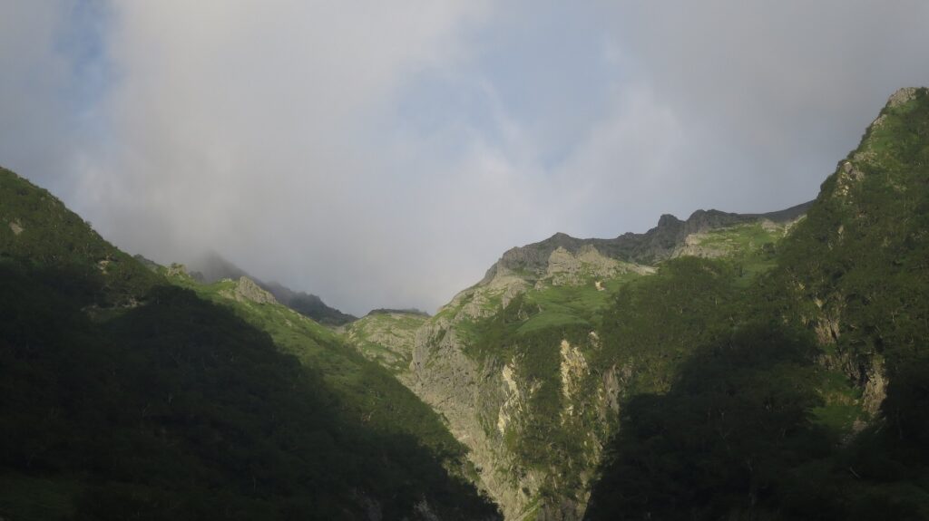 最後まで穂高山頂は雲の中でした