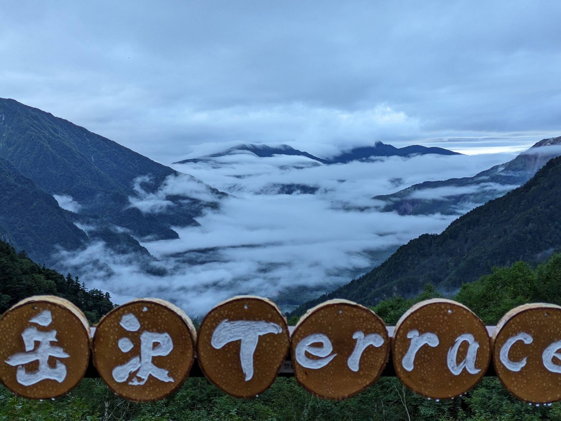 小屋からの上高地を覆う雲海